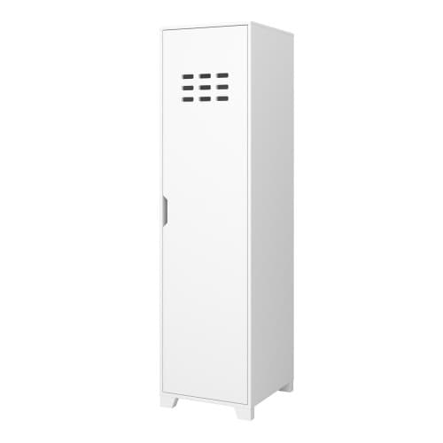 Cette armoire est fabriquée en bois de haute qualité avec une finition blanche qui lui donne de l’élégance dans n’importe quelle maison. Idéale pour les petites pièces, elle offre de nombreux rangements derrière une porte avec une tringle à penderie et des étagères.
